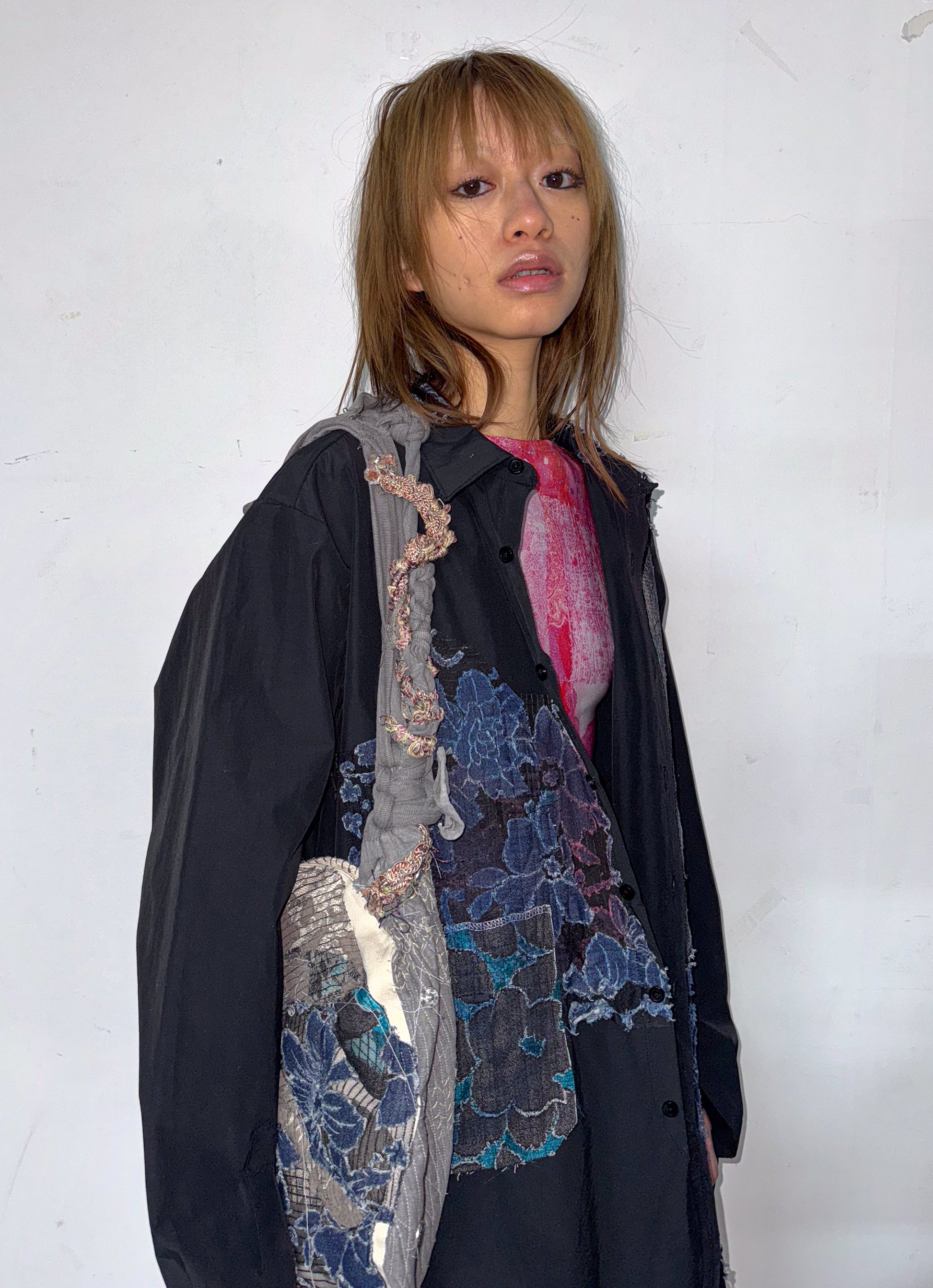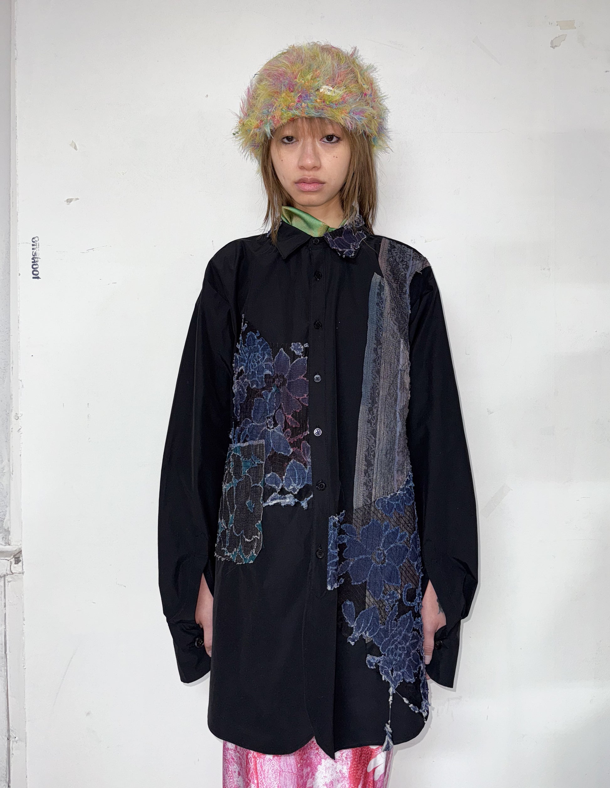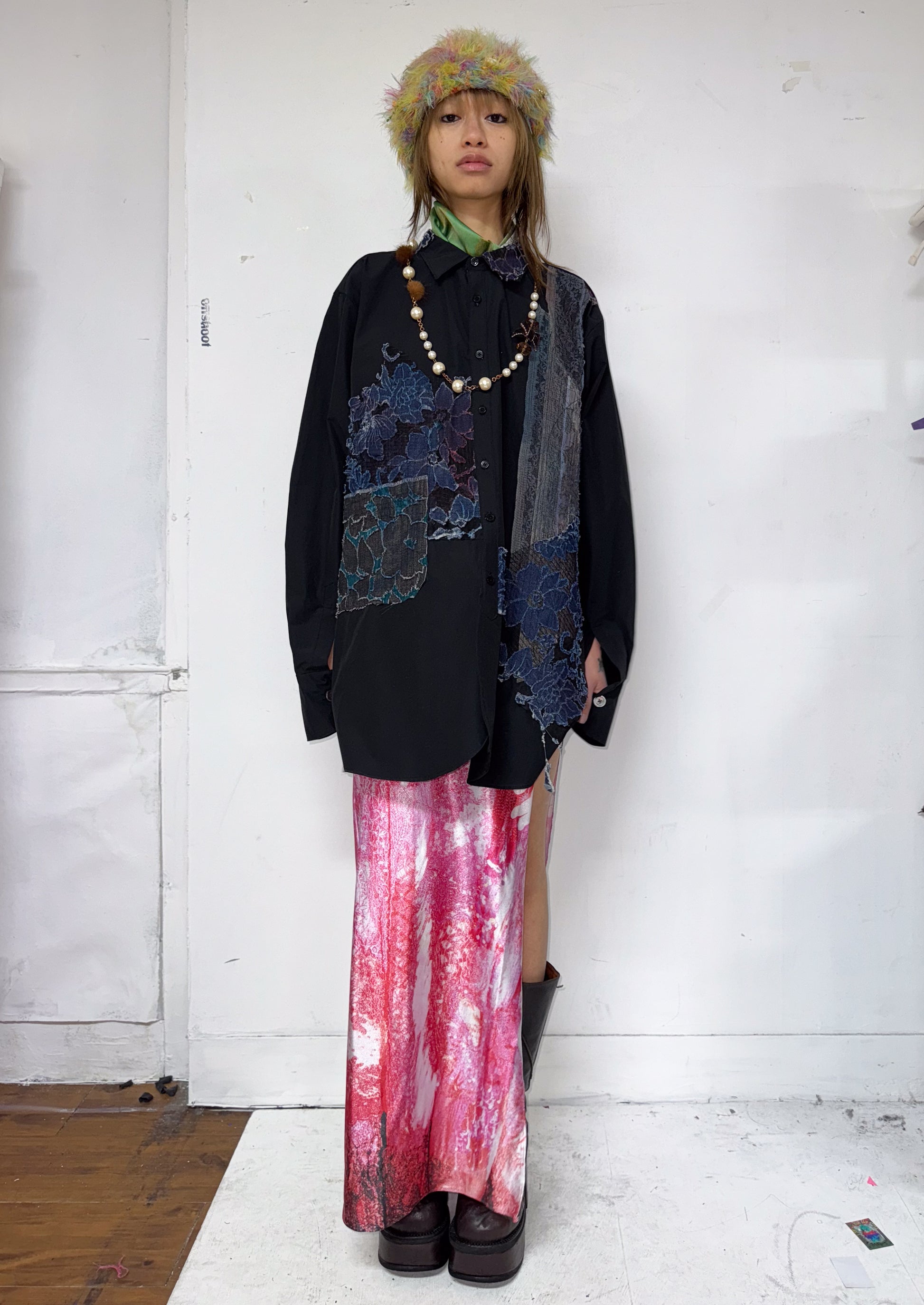 Featuring patchwork designs created with embroidery and collage spray painting techniques. Each shirt is a one-of-a-kind handmade piece.